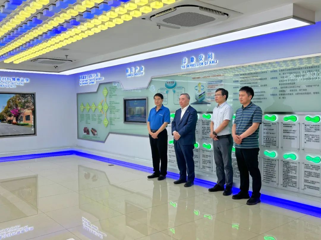 在产品展厅,琳琅满目的聚氨酯复合材料样品和产品实物有序陈列。公司产品在消费电子、汽车内饰等领域的高端应用成果,吸引了众人目光。宋志平会长对安利股份在材料科技领域的深厚积累与创新活力,表示充分肯定和高度认可。